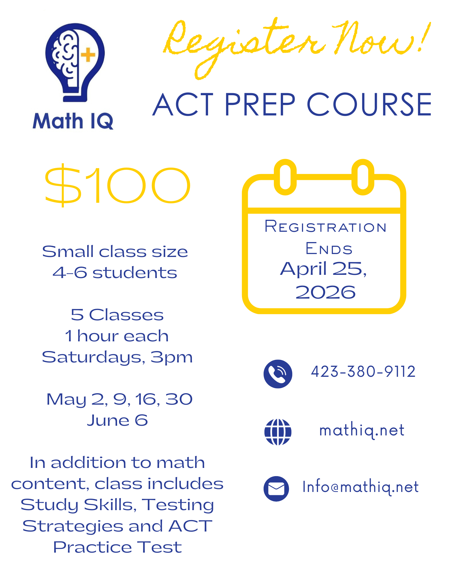 Is your child worried about the math portion of their annual state exams? We teach our students to control the factors they can - get enough rest, eat breakfast, take their time and take the tests seriously. Beyond that, Math IQ can help them sharpen their skills, feel great about their abilities, and show what they know.
